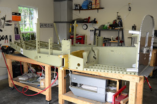 so not to interfere with the gear mounts:Legs off and fuse back on the workbench. Headed out to Texas to take my ATP-Helicopter check ride, so this is where it will sit for the time being: